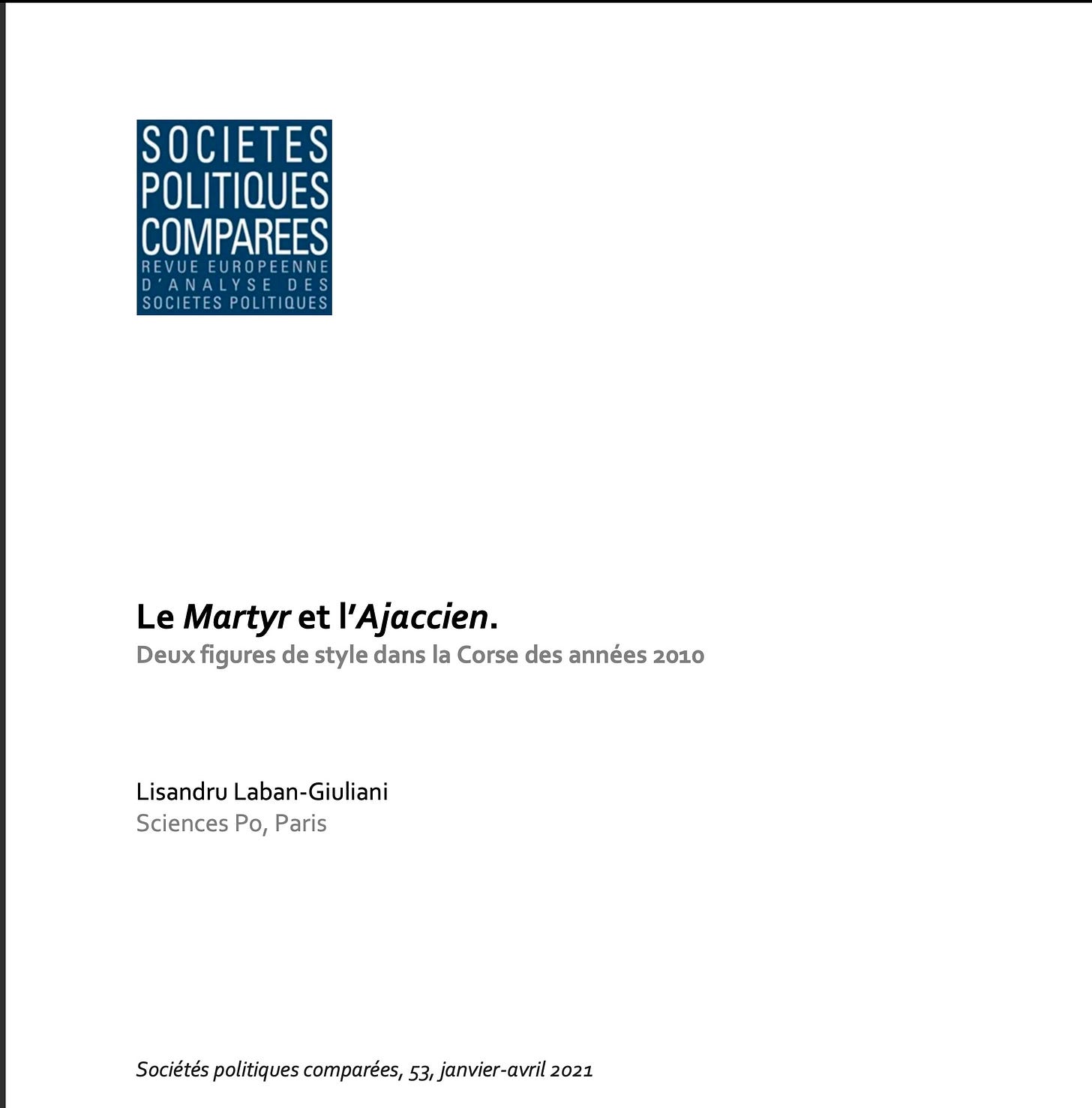 Sur « Le martyr et l’Ajaccien » de Lisandru Laban Giuliani